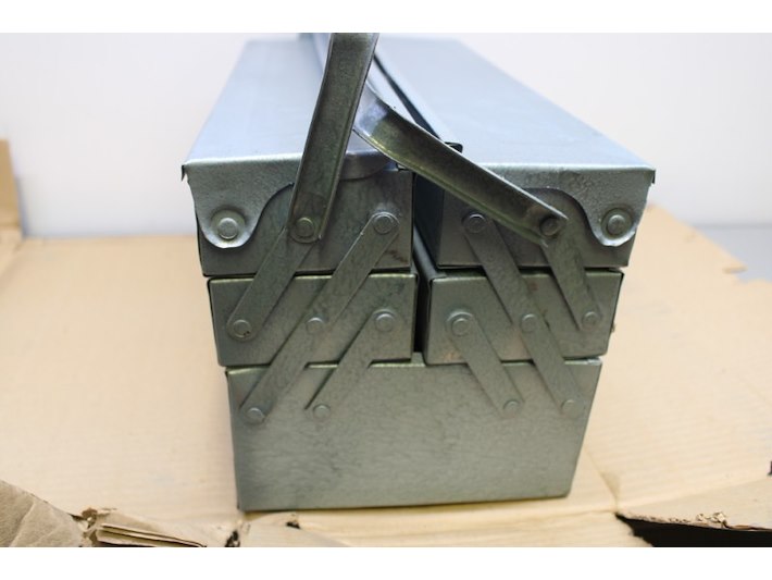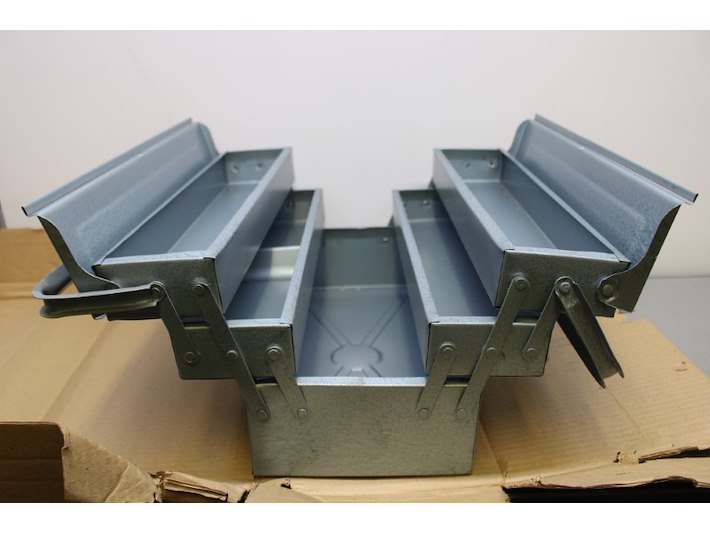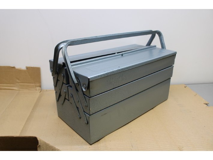 3x Stalen gereedschapskist grijs, met transportschade, hbd 21x20x42cm Staat: Nieuw Verzendgewicht: 3.00 Kg.