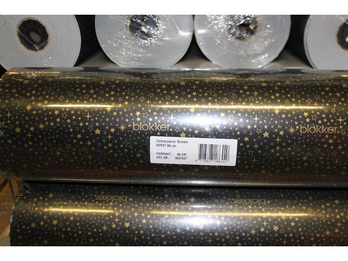 Partij rollen inpakpapier met opdruk c.a. 21 stuks
