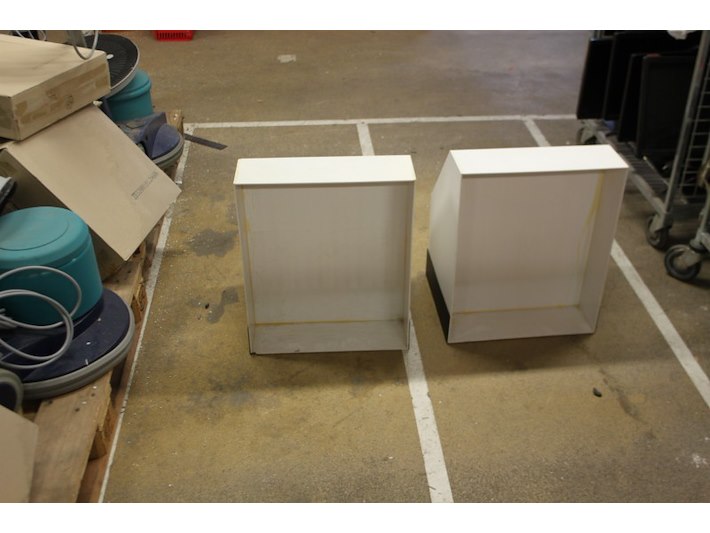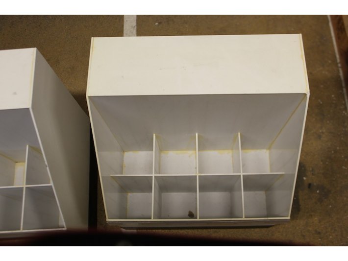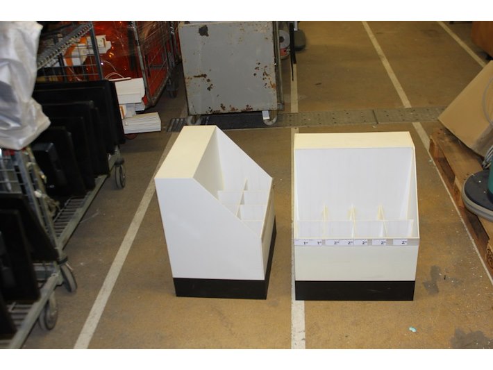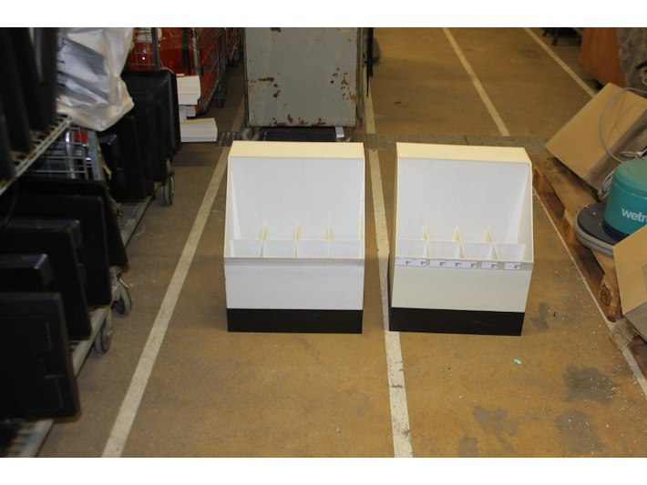 Uitstalbak voor bijv. cadeaupapier rollen, 2 stuks, afmeting 55x47x37. Staat: Gebruikt Verzendgewicht: Deze kavel kan niet worden verzonden!