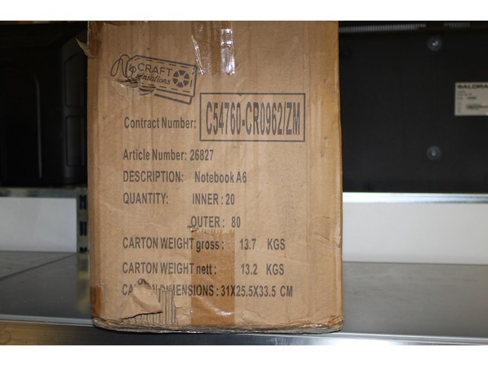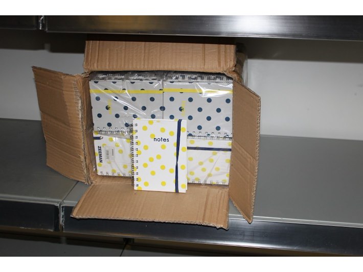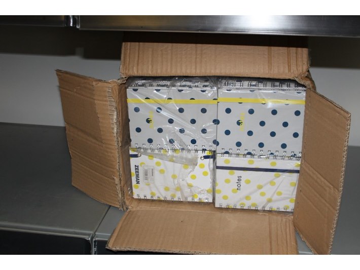 Partij Notitieboekjes, c.a. 80 stuks, in om-doos. Staat: Nieuw Verzendgewicht: 15.00 Kg.
