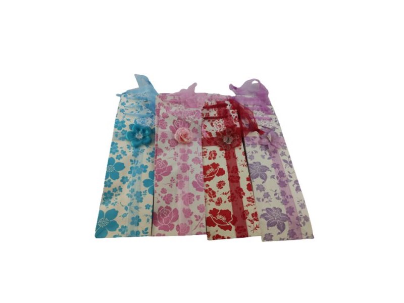 33 x Flessen Kadotas “Bloemen”, Flessen cadeautas met bloemenprint in 4 soorten. Aan de voorkant zit een kunststof bloem en een klein kaartje. De tas sluit met lint. Afmeting: 36 x 12,5cm. Staat: Nieuw Verzendgewicht: 1.00 Kg.