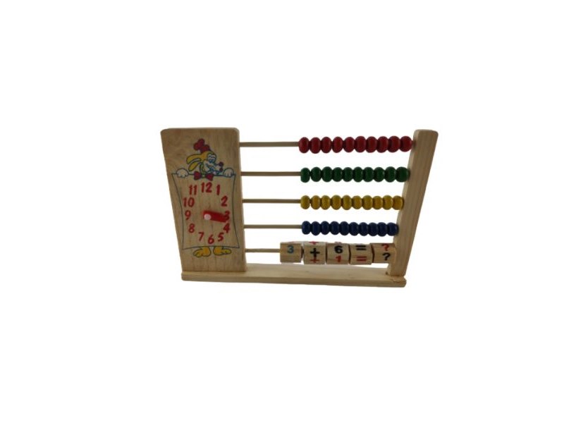 8 x Houten telraam, Telraam met 4 rijen kralen, 1 rij met getallen en rekentekens en verstelbaar klokje. Afmetingen telraam: 20.5 x 13.5 cm. Staat: Nieuw Verzendgewicht: 0.80 Kg.