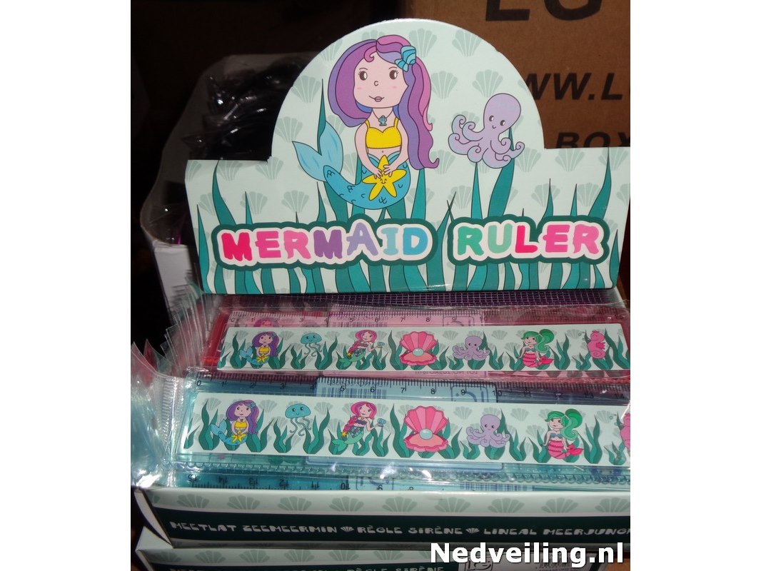 240x Lineaal Mermaid 15cm, in display Staat: Nieuw Verzendgewicht: 3.20 Kg.