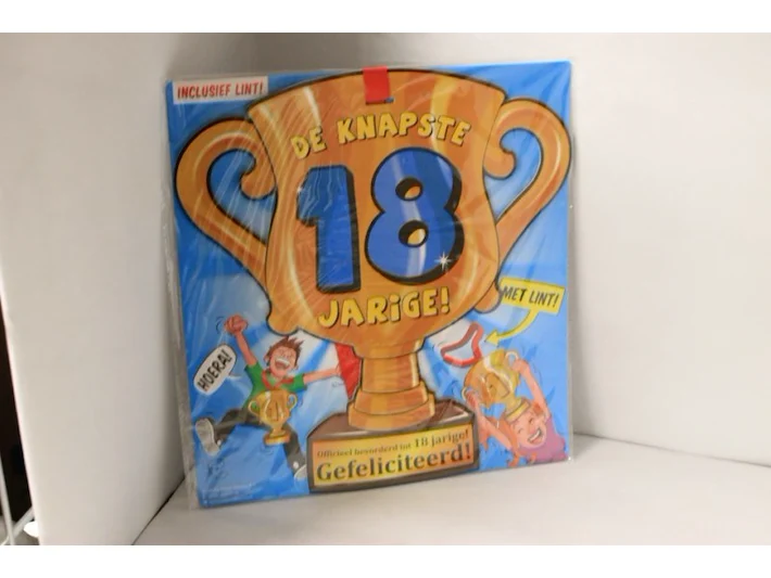 6x Trofee met lint en tekst Knaptse 18 jarige in ds 49 Staat: Nieuw Verzendgewicht: 0.20 Kg.