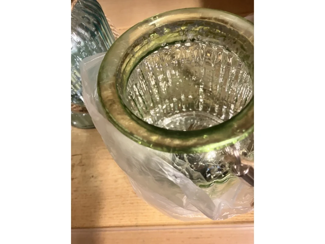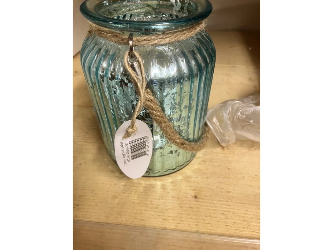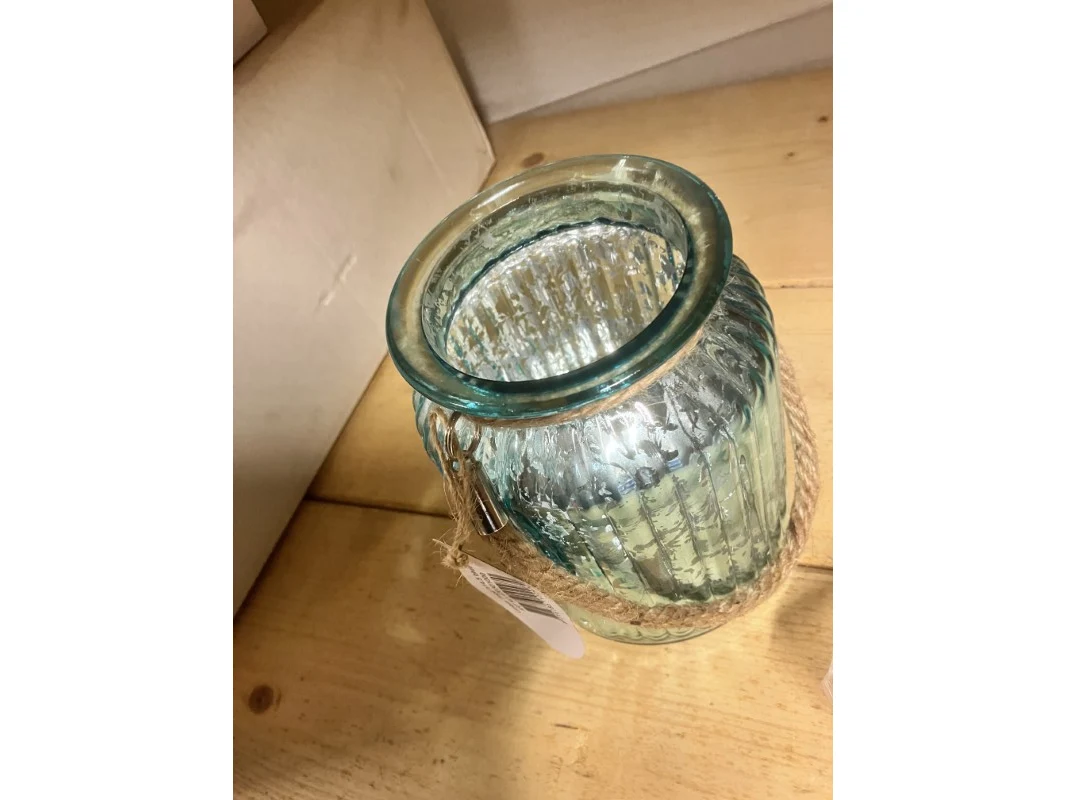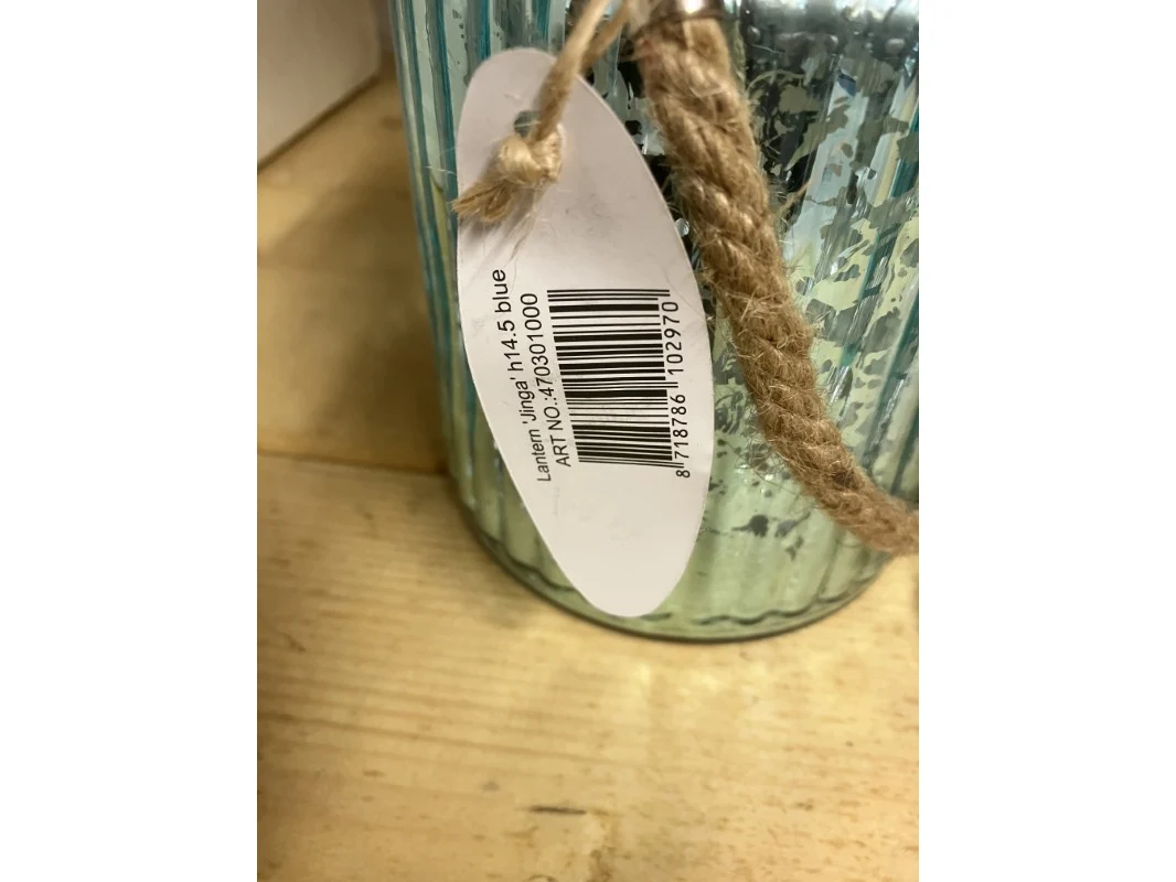 9 grote windlichten 8 blauwe en 1 groene hoogte 15cm doorsnede 11 cm., Staat: Nieuw Verzendgewicht: 3.90 Kg.