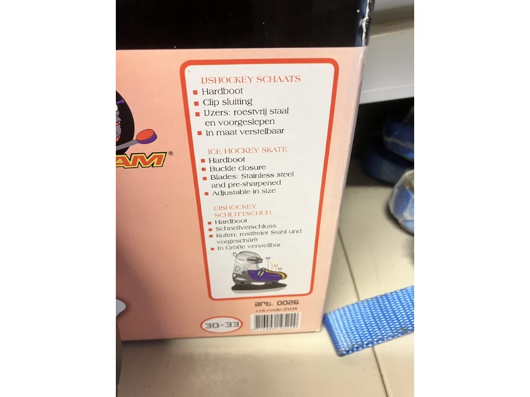 Kinder ijshockeyschaatsen van Nijdam verstelbaar maat 30 tot 33, Staat: Nieuw Verzendgewicht: 1.60 Kg.