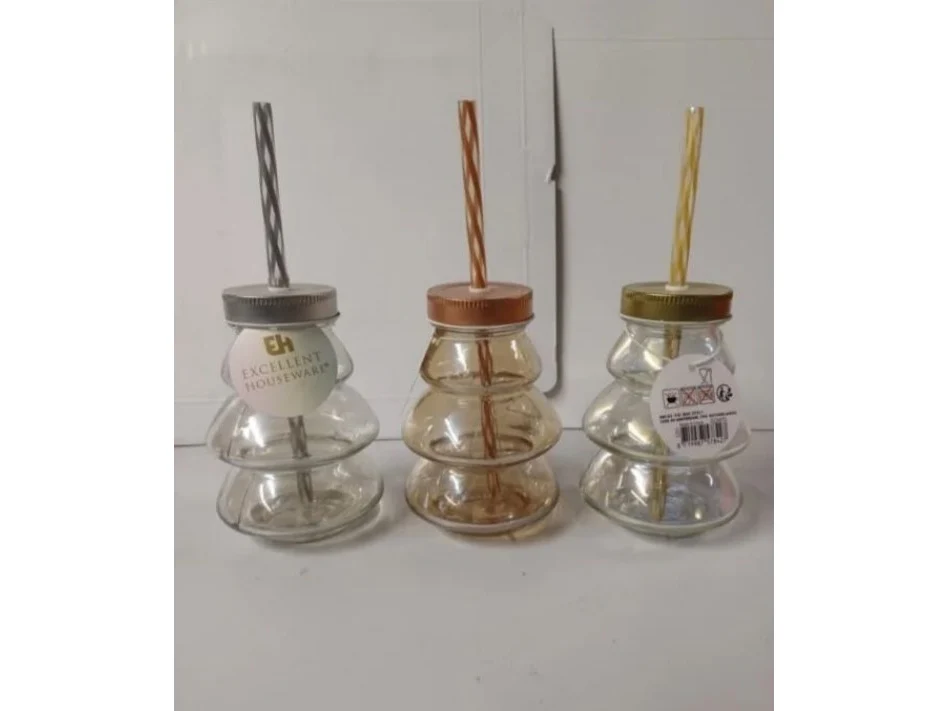 Glazen bol flesje met rietje mix Staat: Nieuw Verzendgewicht: 6.00 Kg.
