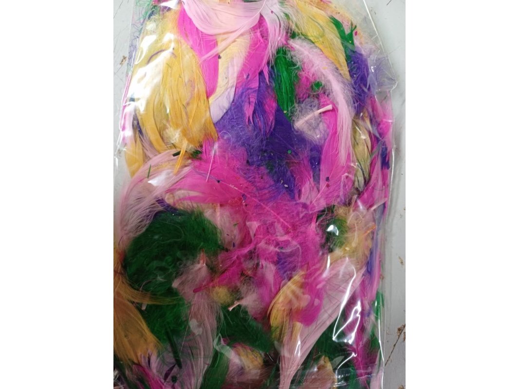 Gekleurde veertjes zak a 100 stuks 50 zakjes , Staat: Nieuw Verzendgewicht: 2.00 Kg.