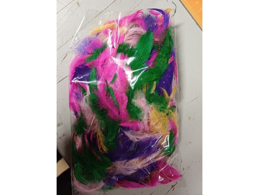 Gekleurde veertjes zak a 100 stuks 50 zakjes , Staat: Nieuw Verzendgewicht: 2.00 Kg.