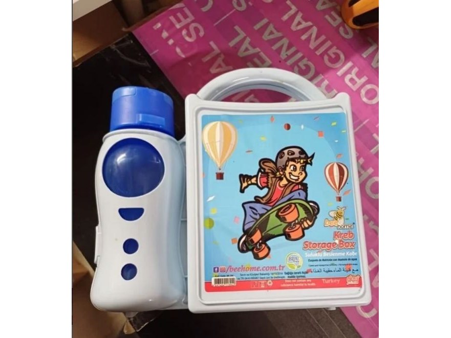 Partij broodtrommel met beker fles rose en blauw mix 14 stuks in doos 86 Staat: Nieuw Verzendgewicht: 3.00 Kg.
