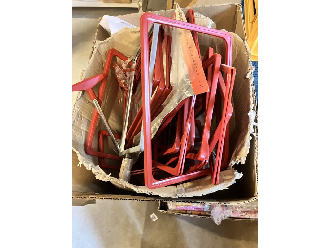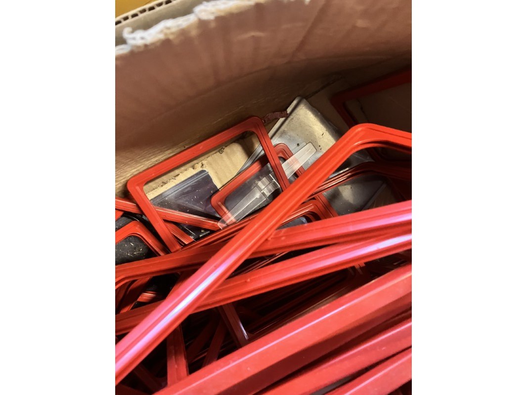 Doos met ca 30 prijskaartramen en accessoires, assorti maten, meest A4 formaat Staat: Nieuw Verzendgewicht: 2.50 Kg.