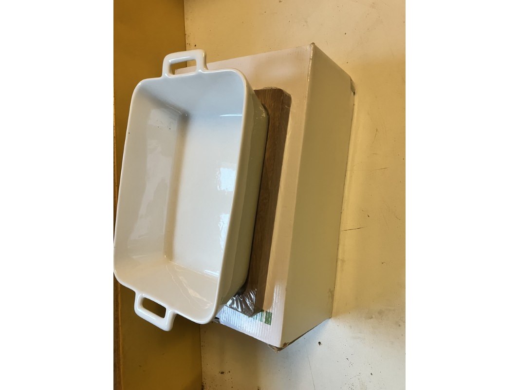 Ovenschaal met houten onderzetter, Staat: Nieuw Verzendgewicht: 3.00 Kg.