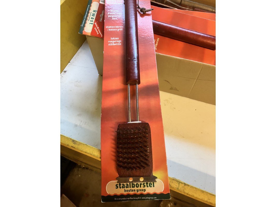 3 x BBQ staalborstel luxe met houten greep, Staat: Nieuw Verzendgewicht: 0.29 Kg.