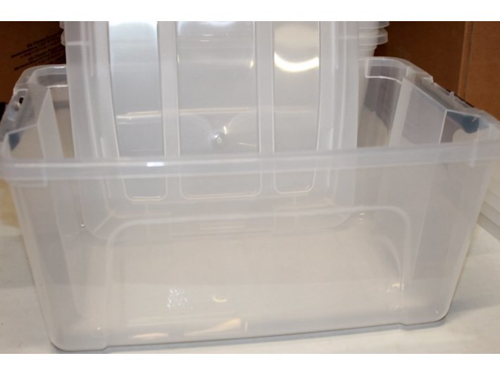 Opberg box transparant 39x29x18 4 stuks Staat: Nieuw Verzendgewicht: 10.00 Kg.