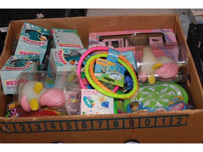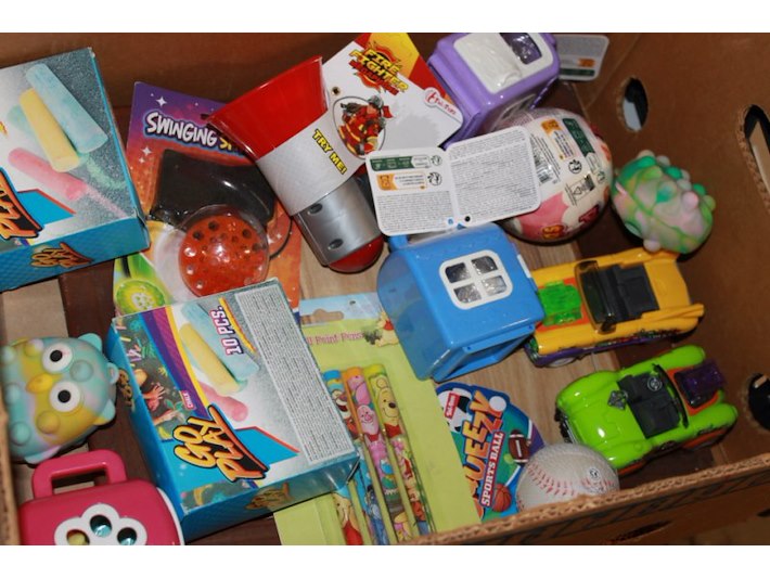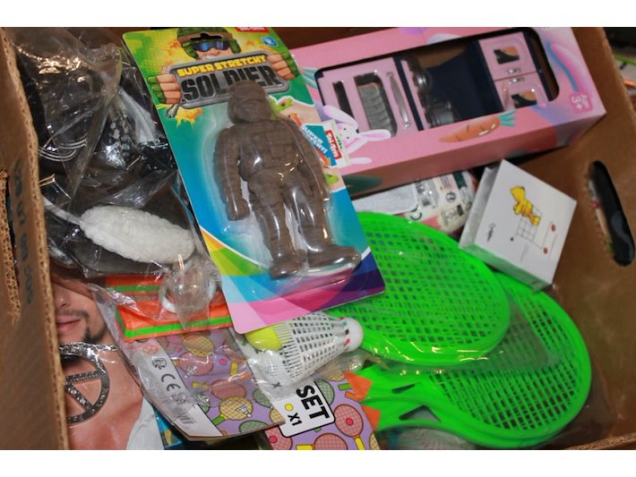 Mix bananen doos met speelgoed ruim 35 stuk in DS L Staat: Nieuw Verzendgewicht: 8.00 Kg.