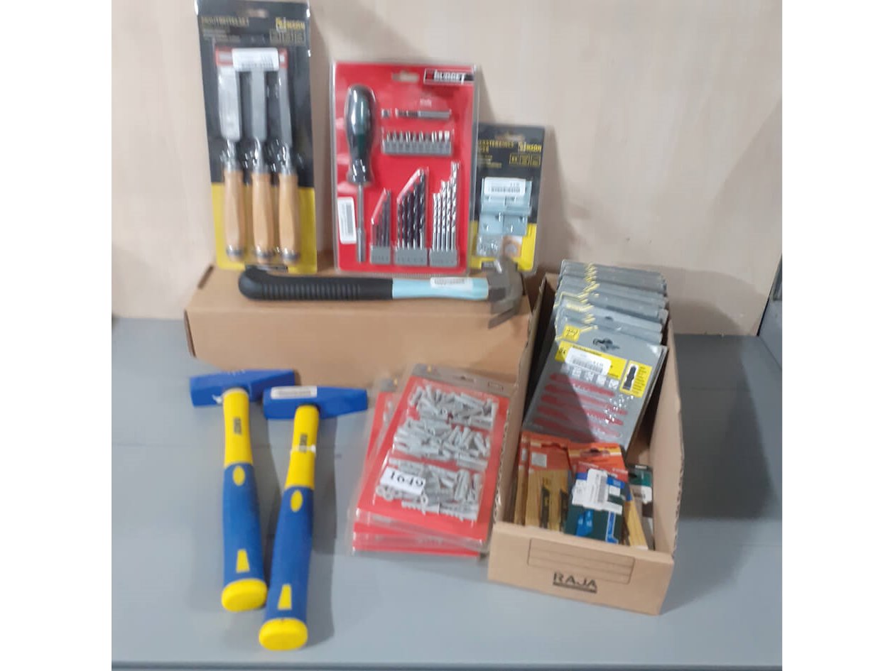 Div. gereedschap o.a. decoupeerzaagjes, hamers, houtbeitels Staat: Nieuw Verzendgewicht: 2.00 Kg.