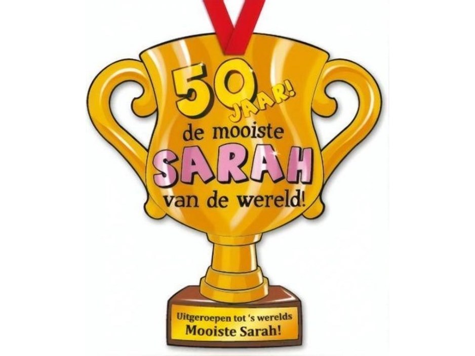 Trofee met lint en tekst 50 jaar sarah 30x