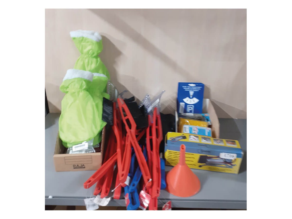 Ruitenkrabbers met handschoen en op steel + divers Staat: Nieuw Verzendgewicht: 4.00 Kg.
