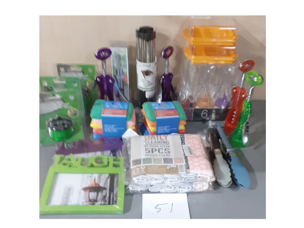 Doos div. o.a. messenslijpers, glazen etc. Staat: Nieuw Verzendgewicht: 4.00 Kg.