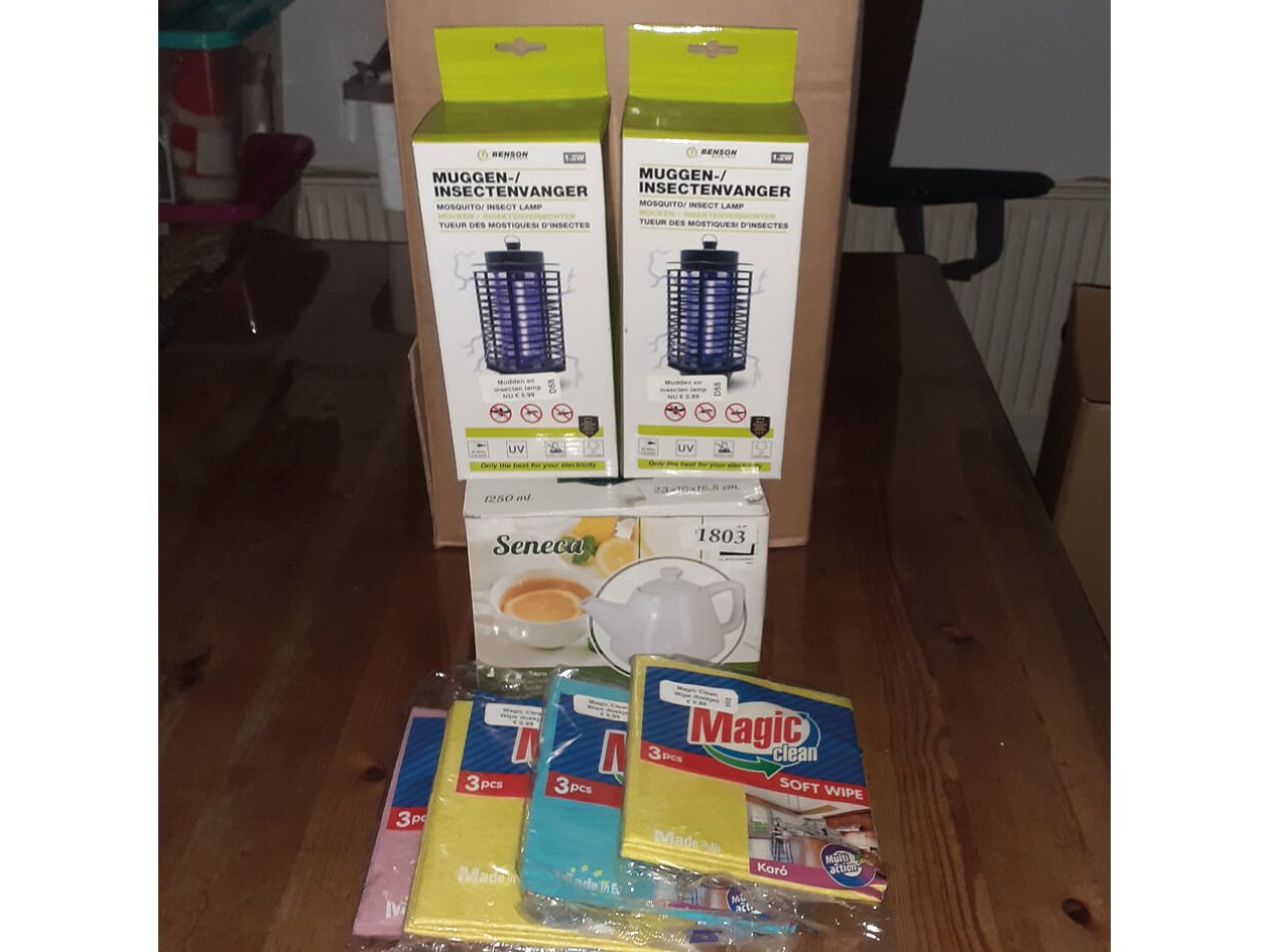 Theekan, 2 insectenlampen en stofdoekjes Staat: Nieuw Verzendgewicht: 4.00 Kg.