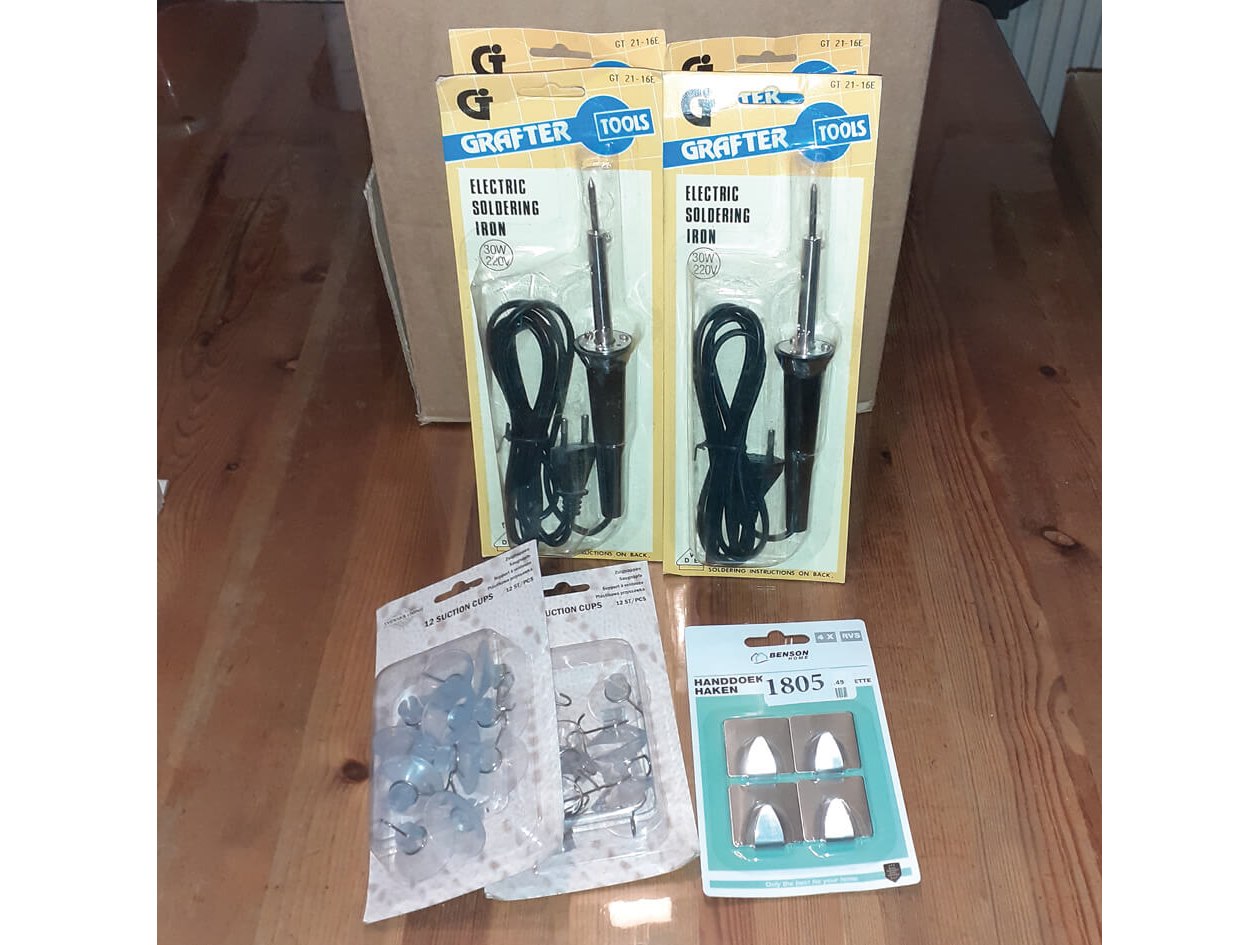 4x soldeerbout, zuignappen, handdoekhaakjes Staat: Nieuw Verzendgewicht: 4.00 Kg.
