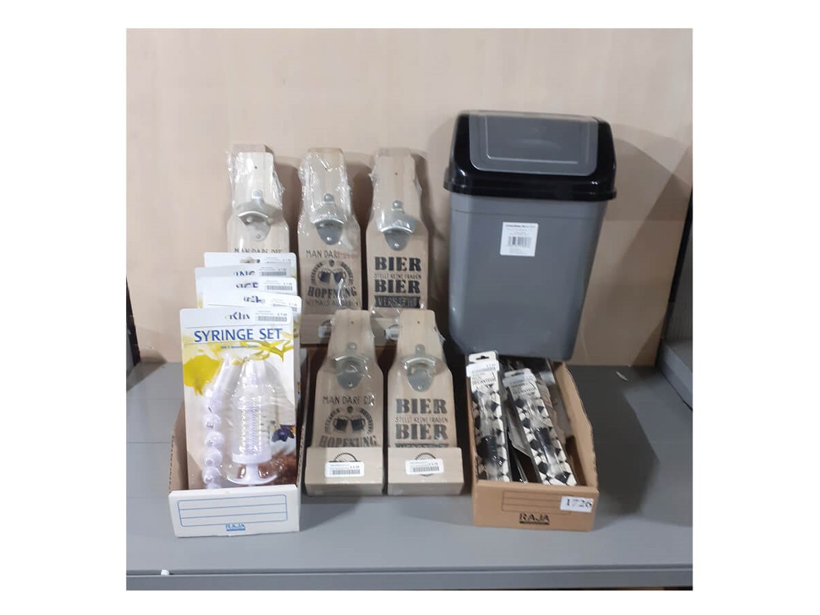 Diverse huishoudelijke accessoires oa 8 flesopeners met opvangbak Staat: Nieuw Verzendgewicht: 4.00 Kg.