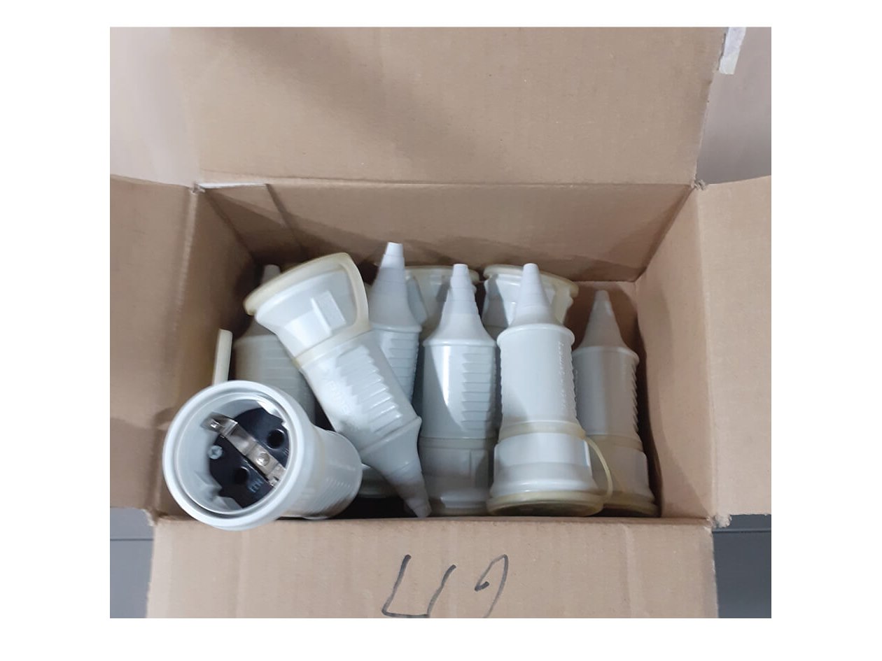 Doos met 12 mennekes contra stekkers Staat: Nieuw Verzendgewicht: 4.00 Kg.