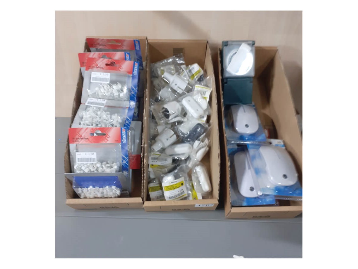 Diverse stekkers, snoer schakelaars, kabelklemmen, nachtlampjes Staat: Nieuw Verzendgewicht: 4.00 Kg.