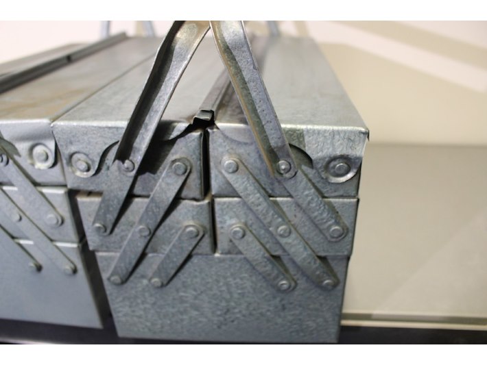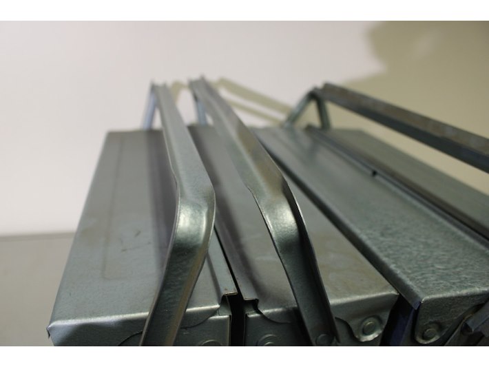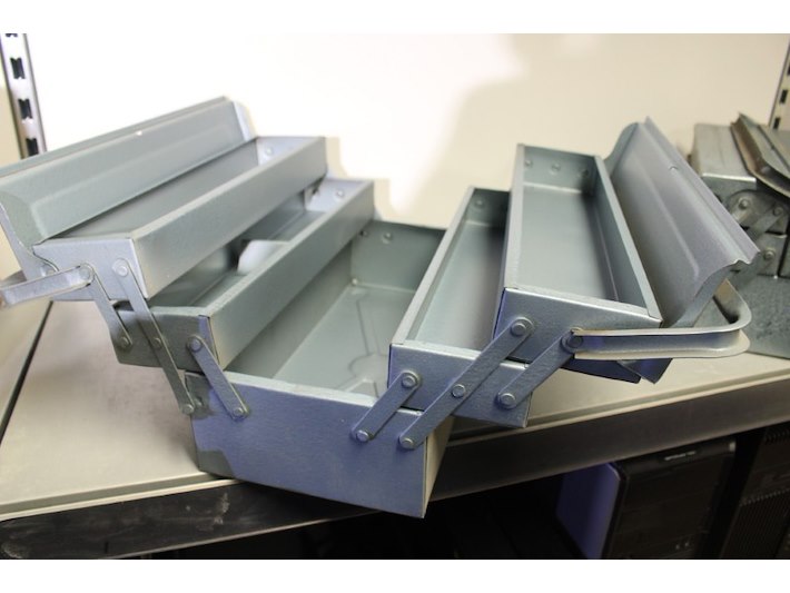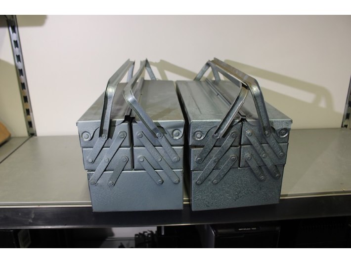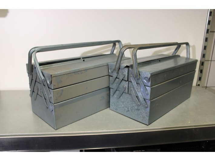 2x Stalen gereedschapskist grijs, met transportschade, hbd 21x20x42cm Staat: Nieuw Verzendgewicht: 2.00 Kg.