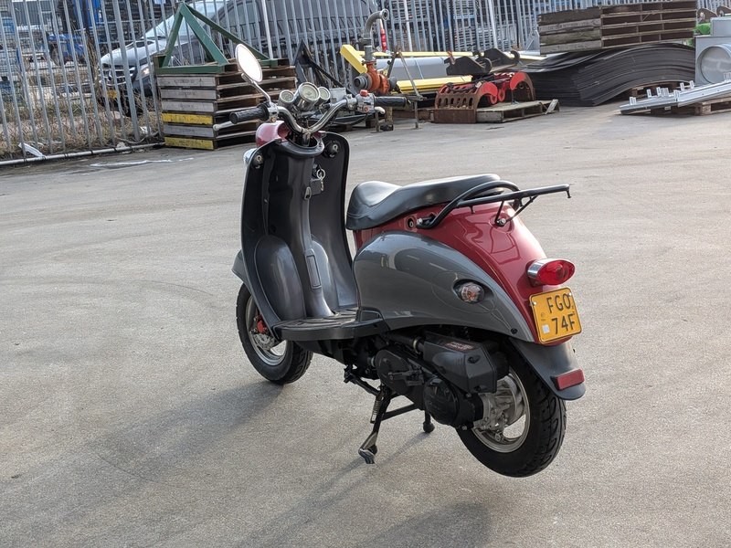 Merk: Pico Product: Retro bromscooter Kleur: Donkergrijs / Antraciet BouwJaar: 2007 Conditie: Gebruikt Specificaties: Kenteken: FG-074-F Afgelezen tellerstand: 6478 km Datum eerste toelating: 13 februari 2007 Massa rijklaar: 80 kg Technische max. massa voertuig: 160 kg Cilinderinhoud: 50 cm3 Aantal cilinders: 1 Brandstof: benzine Aantal sleutels: 1 Geel kenteken, 45 km/h Video: https://youtu.be/4ookpiD31GE