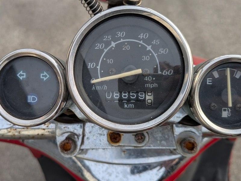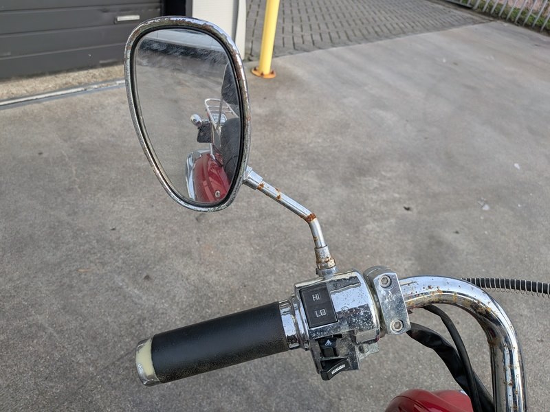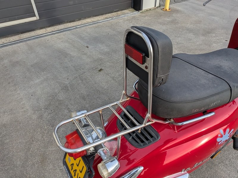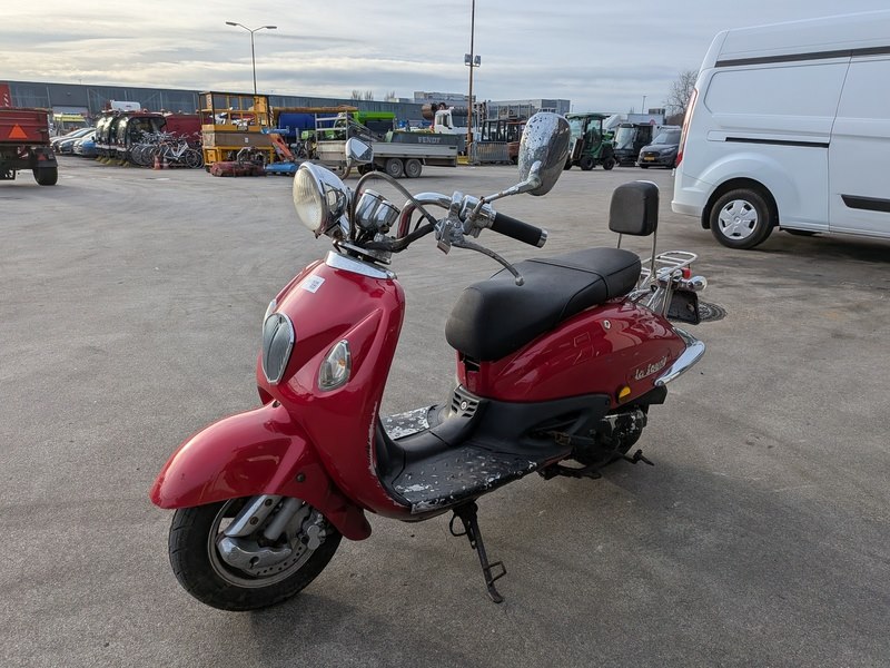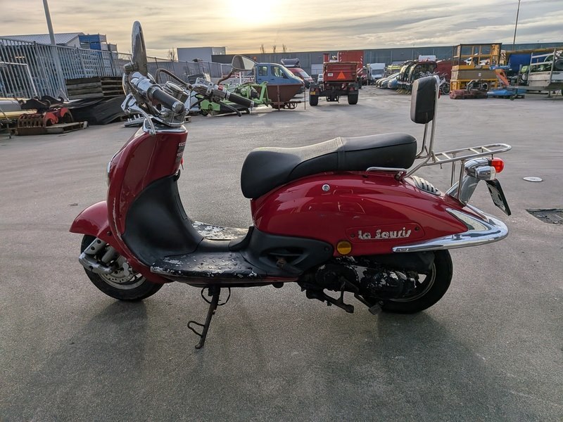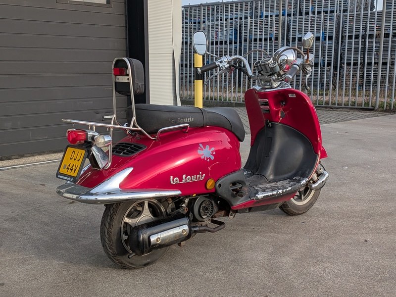 Merk: La Souris Product: Retro bromscooter Kleur: Rood BouwJaar: 2016 Conditie: Gebruikt Specificaties: Kenteken: DJJ-44-V Afgelezen tellerstand: 8859 km Datum eerste toelating: 28 november 2016 Massa rijklaar: 91 kg Cilinderinhoud: 50 cm3 Aantal cilinders: 1 Brandstof: benzine Aantal sleutels: 2 Geel kenteken, 45 km/h