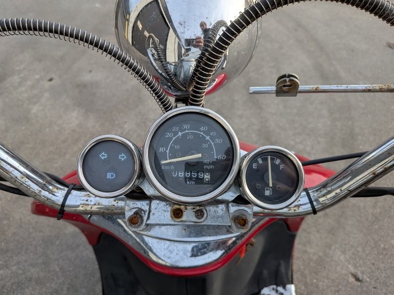 Retro bromscooter, la souris, grande retro zn50qt-e, rood, 2016
