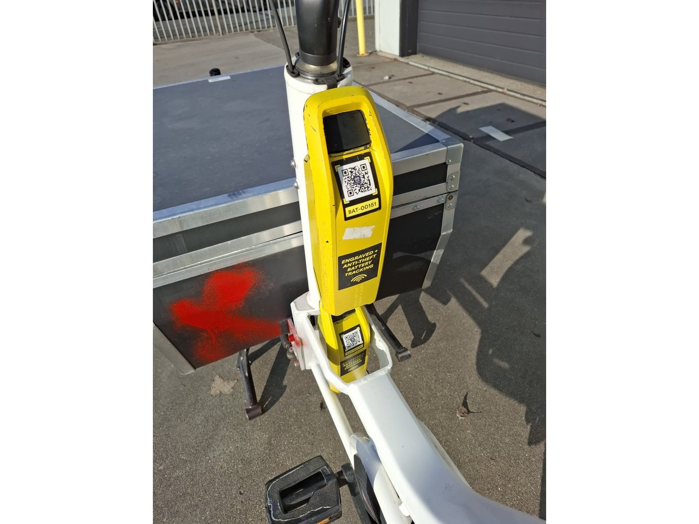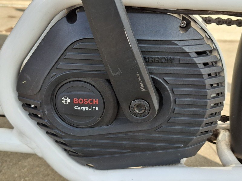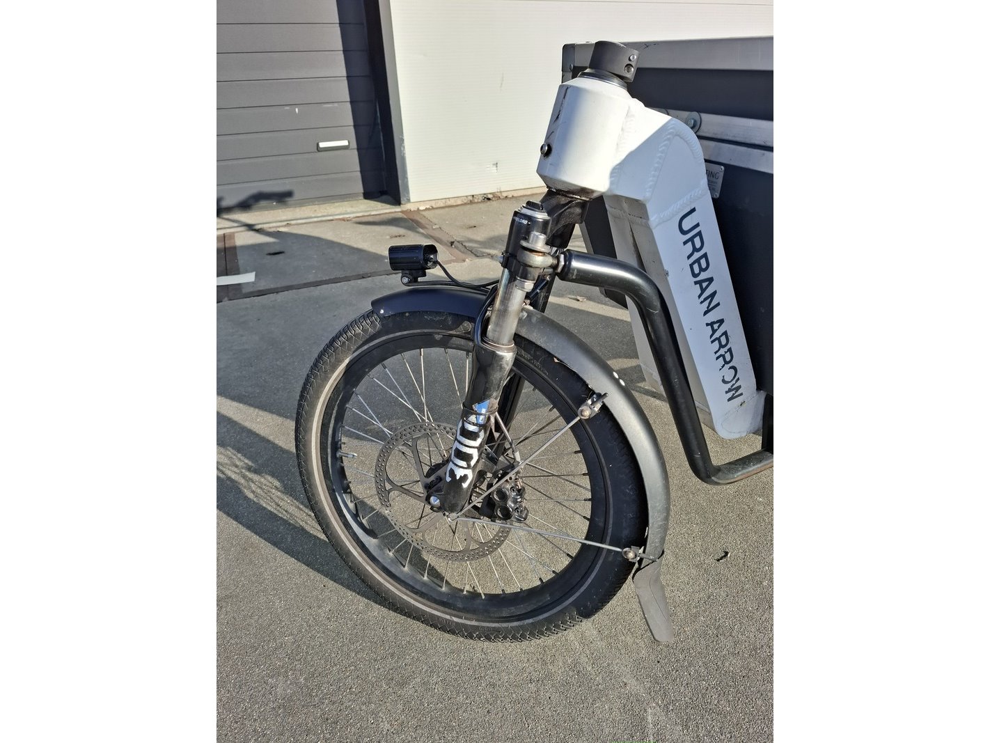 Merk: Urban arrow flatbed Product: Bakfiets Kleur: Wit Afmeting: maat bak ca 93x66x43cm Conditie: Gebruikt Specificaties: Afgelezen tellerstand: 26299 km Framemaat: Ca. 50 cm Voorzien van: - Trapondersteuning, 4 standen - Banden, 26 inch - Voorvering - Schijfremmen - Midden motor Bosch Cargoline