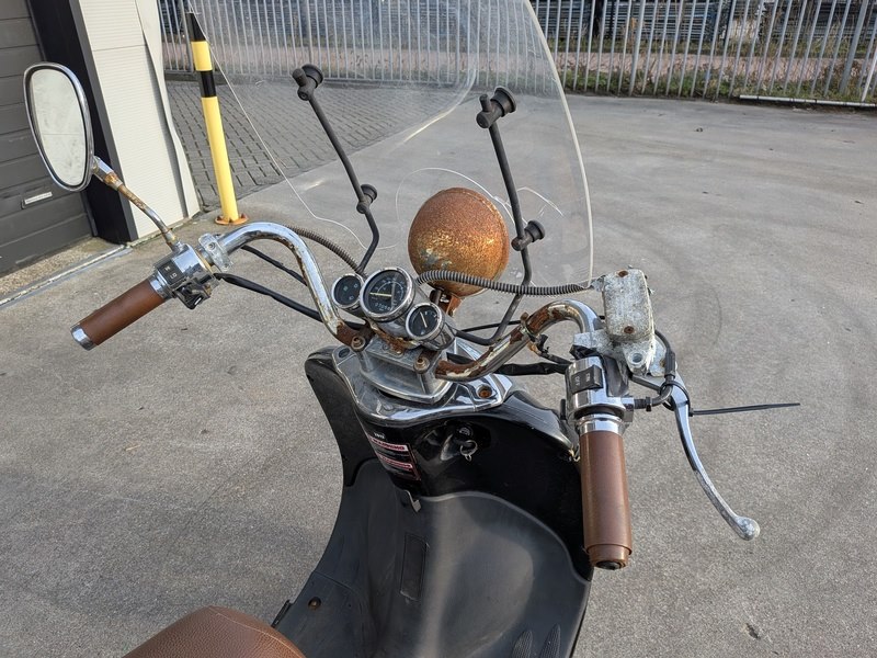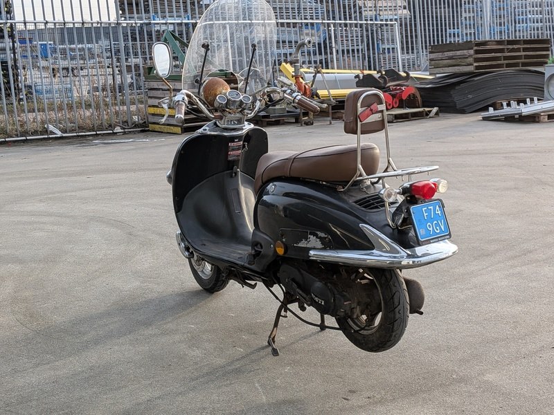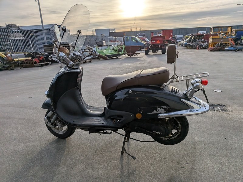 Merk: Znen Product: Retro bromscooter Kleur: Zwart BouwJaar: 2012 Conditie: Gebruikt Specificaties: Kenteken: F-749-GV Afgelezen tellerstand: 7056 km Datum eerste toelating: 20 april 2012 Massa rijklaar: 91 kg Technische max. massa voertuig: 241 kg Cilinderinhoud: 50 cm3 Aantal cilinders: 1 Brandstof: Benzine Aantal sleutels: 1 Geel kenteken, 45 km/h