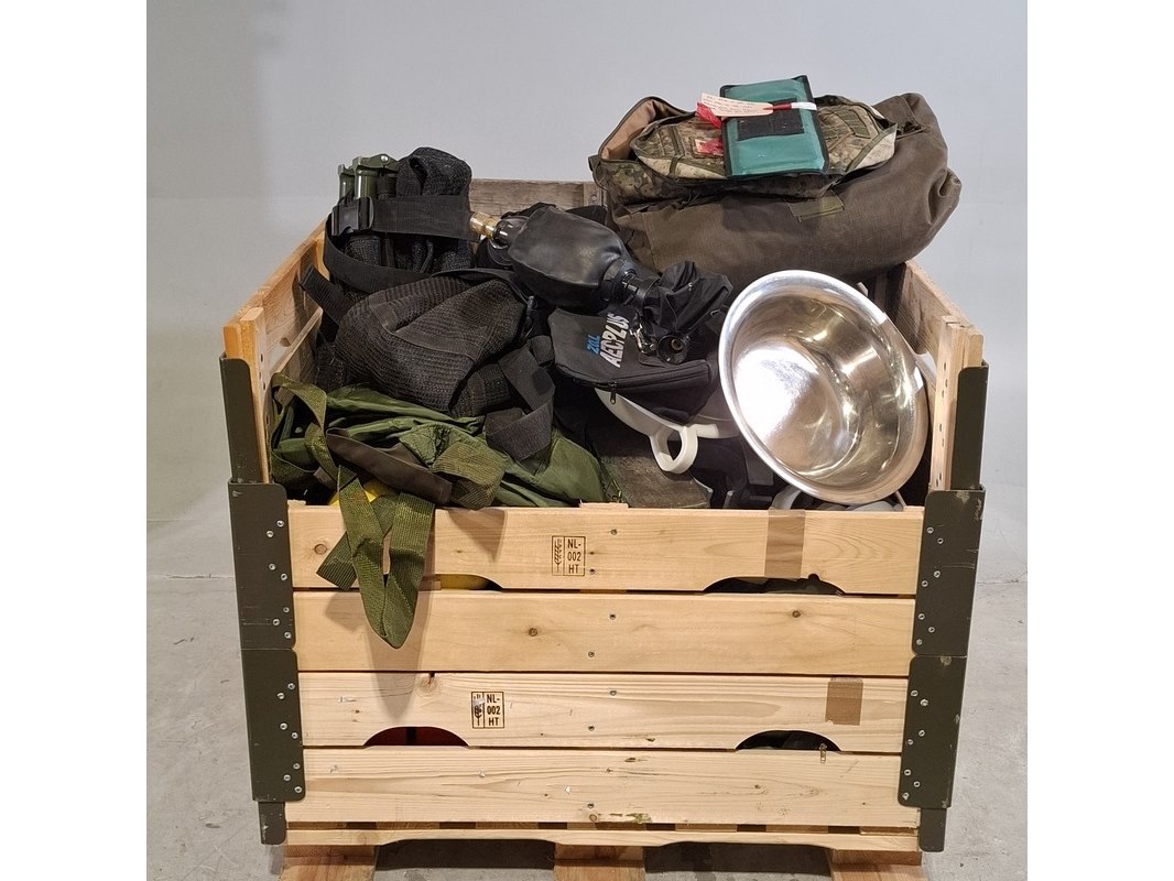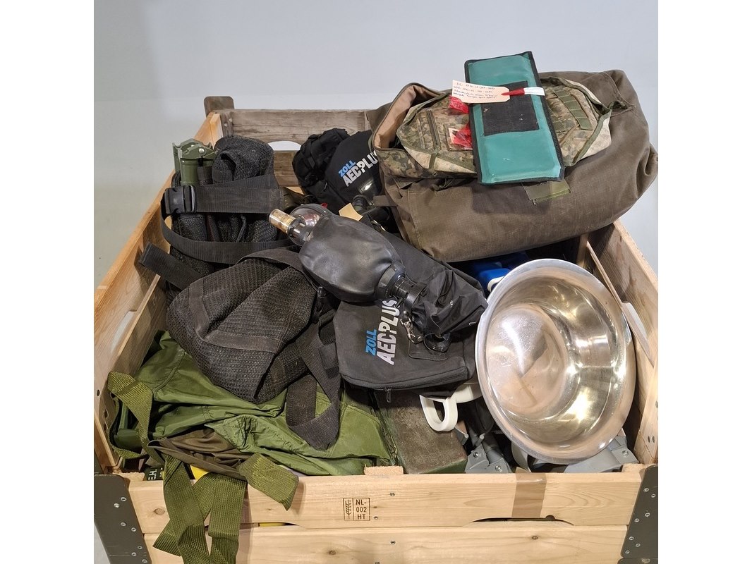 Product: Diverse BHV artikelen Conditie: gebruikt Specificaties: Bestaande uit o.a. brancards, oefenpop, krukken, etc Technische staat en compleetheid onbekend. Exclusief palletkist.
