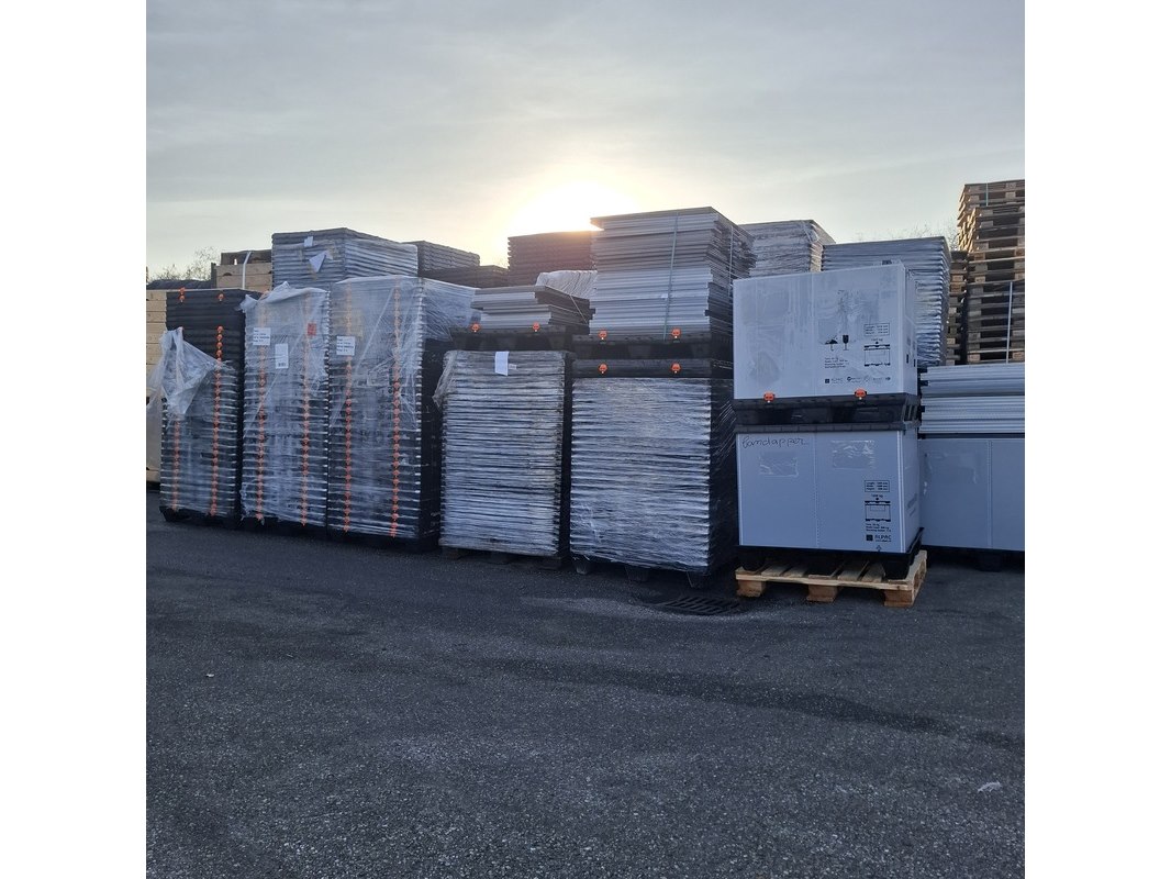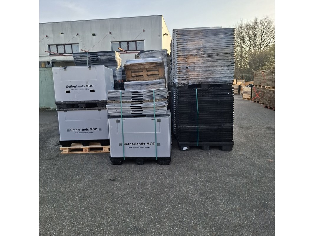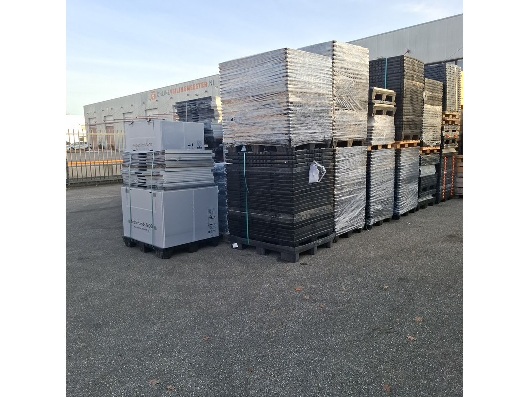 Merk: O.a. Engels Product: Partij uni-paks Afmeting: lxb ca. 100x120 cm. Conditie: Gebruikt Specificaties: Bestaande uit deksels, diverse randen en bodemplaten. Exclusief pallets. Technische staat en compleetheid onbekend.