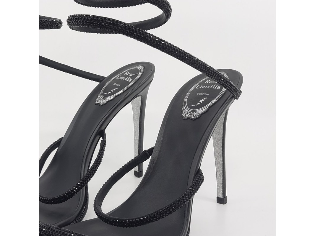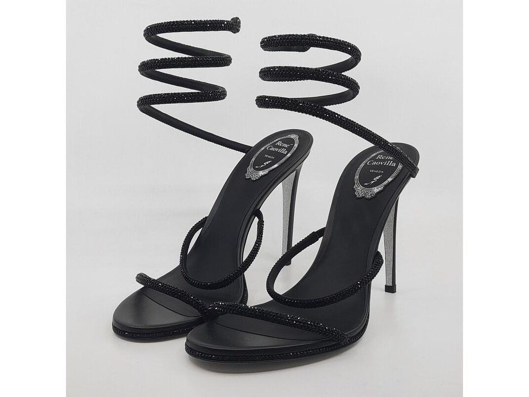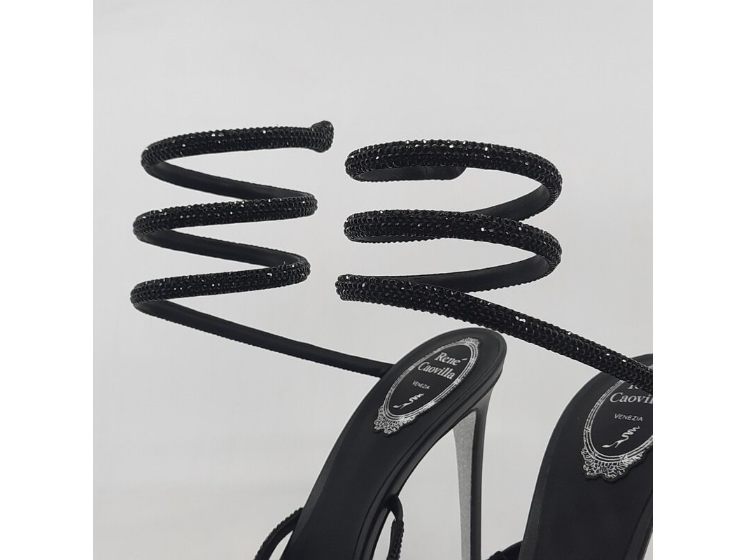 Paar pumps, maat 40, rene caovilla, black satin jet strass