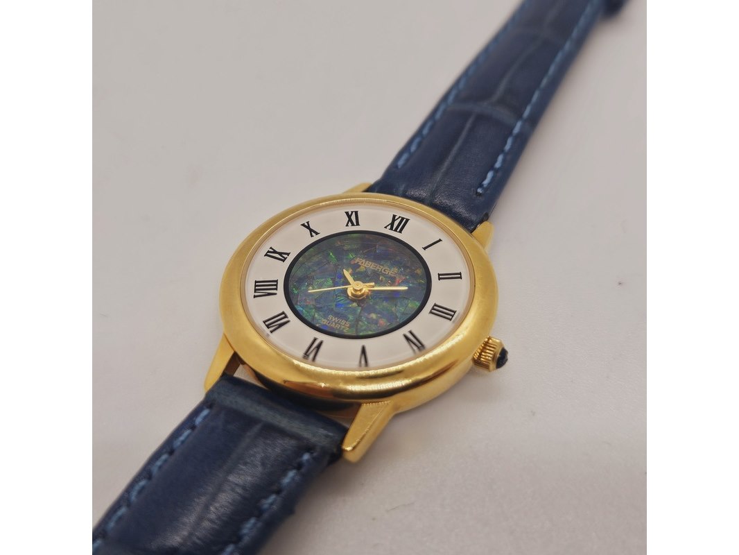 Product: Fabergé 9030 dameshorloge met Opaal wijzerplaat Afmeting: 27mm Specificaties: Quartz uurwerk loopt goed. Merk: Fabergé. Model: 9030. Met Opaal wijzerplaat. In new old stock conditie.