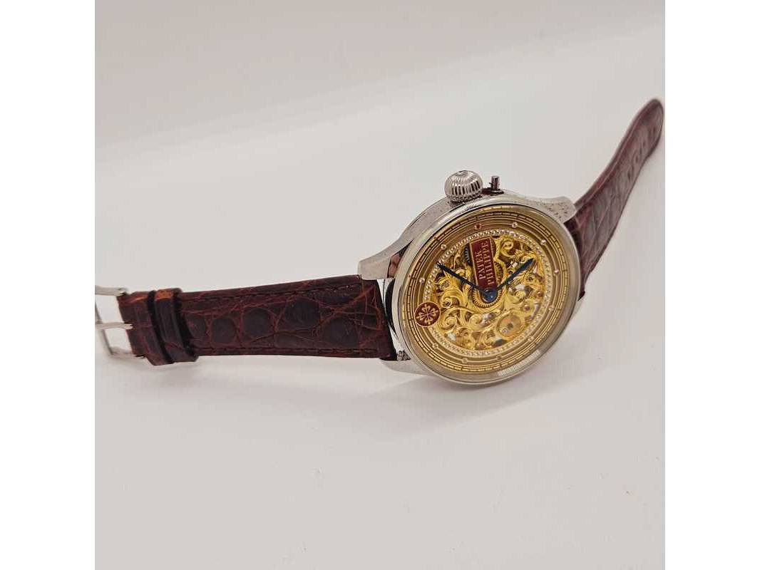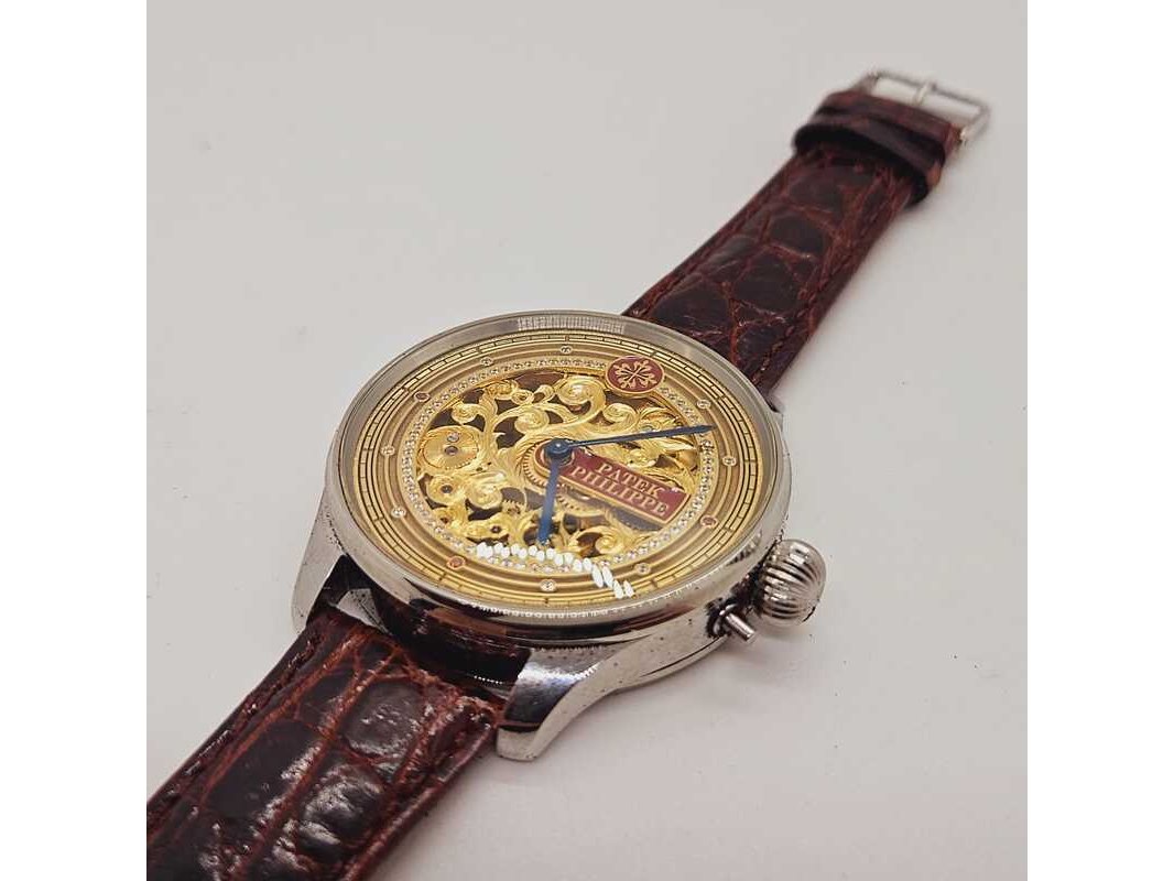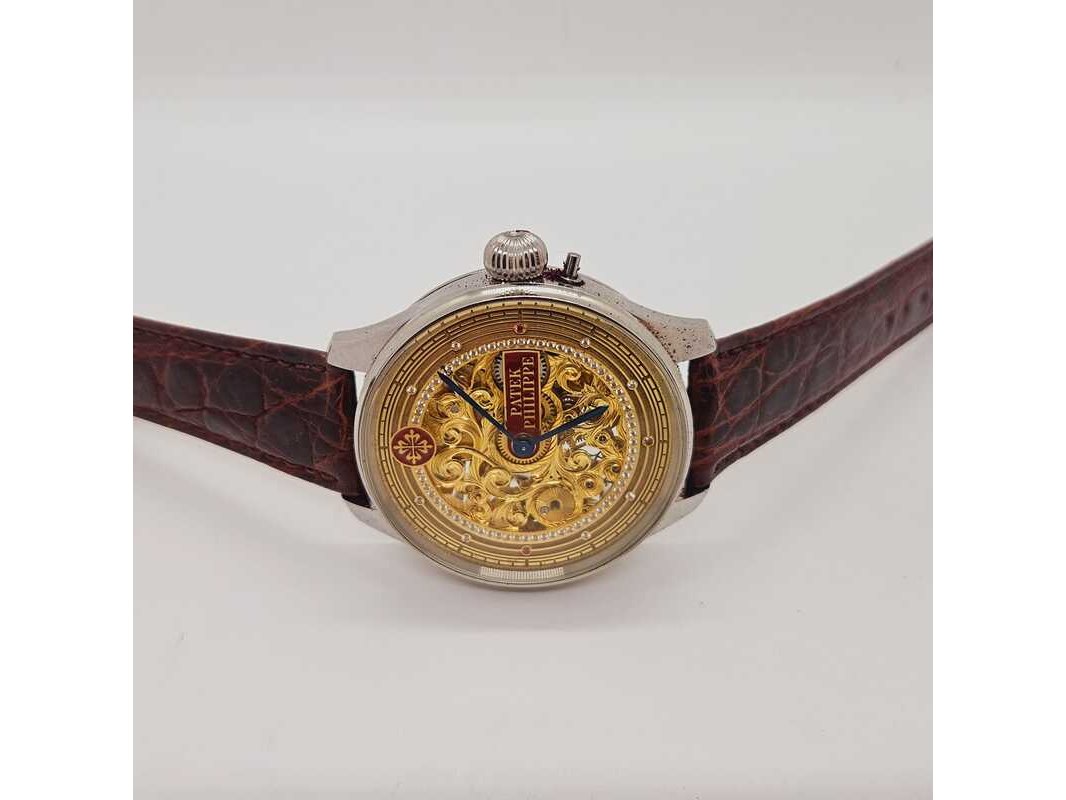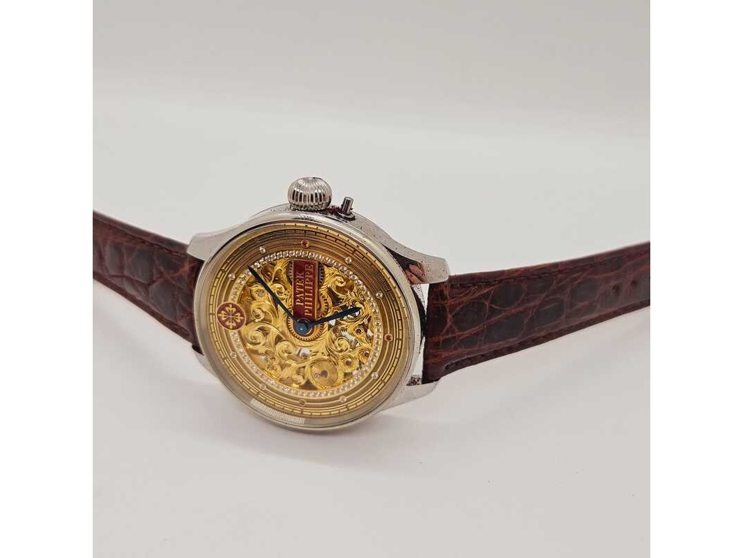 Product: Herenhorloge - Antiek Patek Phillipe uurwerk - Horologisch kunstwerk Afmeting: 53mm Conditie: Gebruikt Specificaties: Heren polshorloge dat een antiek Patek Phillipe-uurwerk combineert met een kast, wijzerplaat en band die nieuw zijn vervaardigd. De kast, wijzerplaat, en band zijn niet van het merk Patek Phillipe Het uurwerk is afkomstig uit een origineel antiek zakhorloge met serienummer: 139462 Dit betreft een volledig functioneel horloge - gereviseerd en geserviced. Horologisch kunstwerk. Antieke horloges / horloge delen die gereviseerd, zijn of nieuwe onderdelen bevatten (bijv. kast, horlogeband) komen niet in aanmerking voor certificatie bij een horlogemaker of AD. Antieke horloges verwijzen over het algemeen naar horloges die vóór 1960 zijn gemaakt. Gezien hun leeftijd en ouderdom is een hoge mate van precisie niet te verwachten. Niet alle onderdelen zijn origineel van de fabrikant; sommige zijn mogelijk vervangen. Bied niet als u op zoek bent naar een perfect product zoals een modern horloge, of als u originaliteit belangrijk vind. Het is moeilijk om de geschiedenis van revisies, renovaties, reparaties en vervangingen van onderdelen te achterhalen.