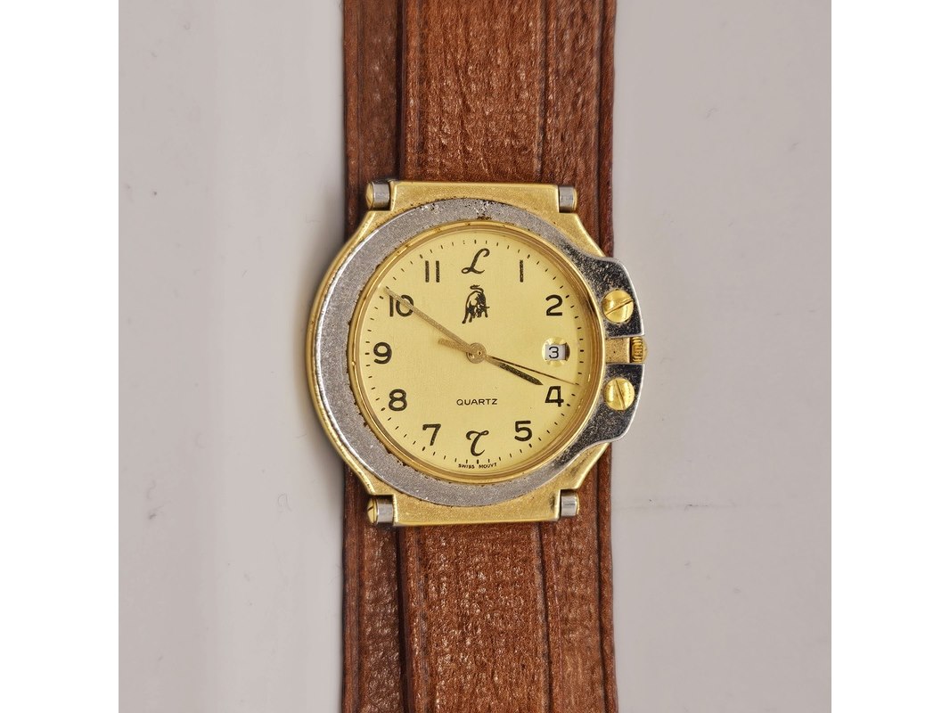 Product: Lambourghini herenhorloge - Collectible Afmeting: 32mm Conditie: Gebruikt Specificaties: Quartz uurwerk loopt goed. Merk: Lambourghini. Met gebruikssporen. Horloge loopt goed, maar de kroon werkt niet (is er zo uit te trekken).