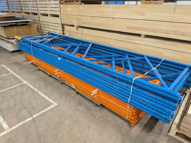 Product: Stellingmateriaal Materiaal: metaal Conditie: gebruikt Specificaties: Bestaat uit 5x staander hxb ca. 451x123cm, ca, 30x ligger, lengte ca. 360 cm