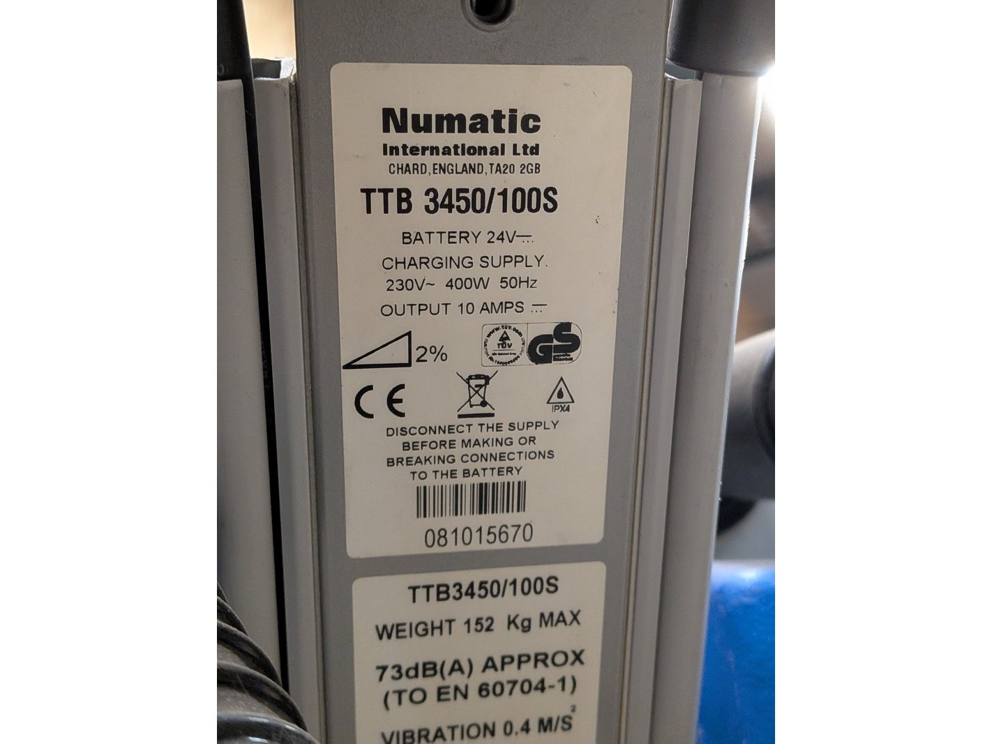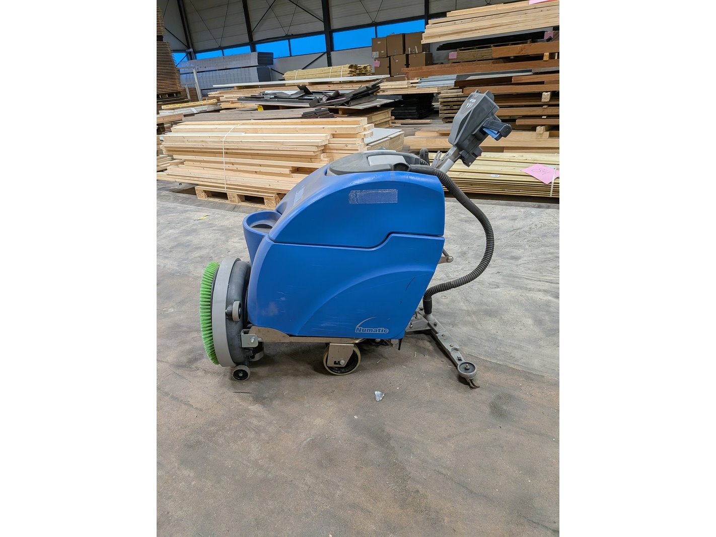 Merk: Numatic international Product: Schrobmachine Kleur: blauw Afmeting: lengte: ca. 130cm, diepte: ca. 80cm, hoogte: ca. 95cm Conditie: gebruikt Specificaties: borstel diameter: 43 cm, draadloze werking, werking onbekend, compleetheid onbekend, staat en werking onbekend 152kg