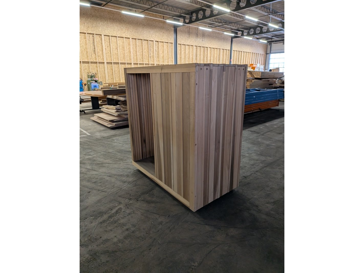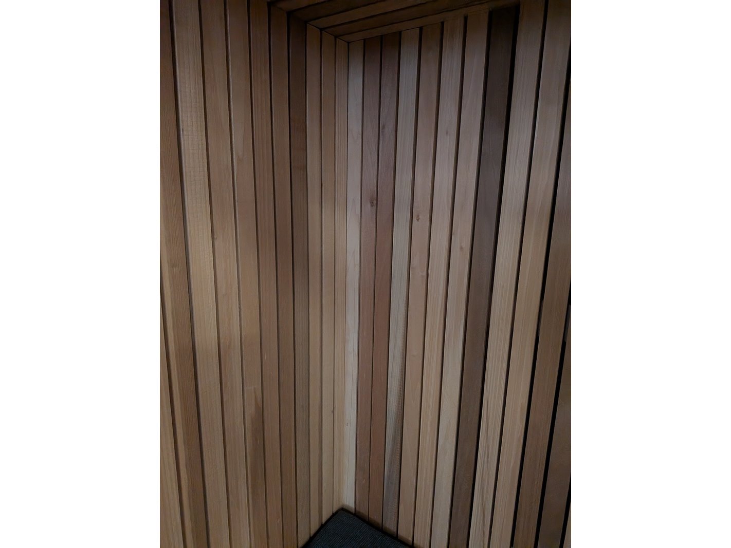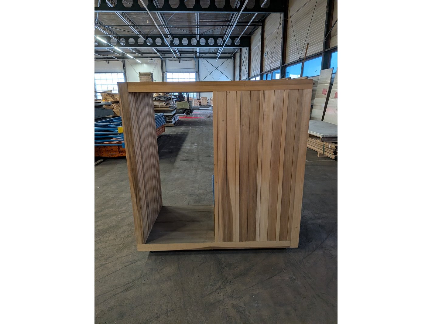 Product: Belhokje / rustruimte Materiaal: hout Afmeting: (bxdxh) ca. 1450x752x1515 Conditie: nieuw Specificaties: belhokje of voor een rust momentje onbehandeld hout
