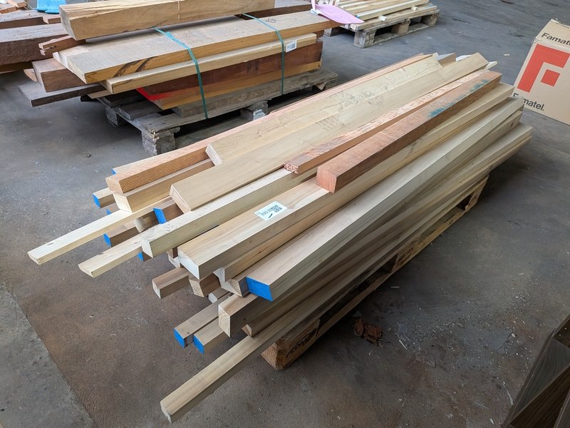 Product: Diverse houten balken Materiaal: hout Afmeting: Gemiddelde afmetingen; lengte ca. 145cm, breedte ca. 5cm, dikte ca. 4cm Conditie: gebruikt Specificaties: houten balken, verschillende soorten en lengtes