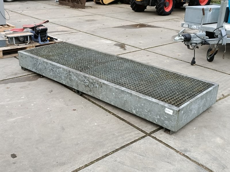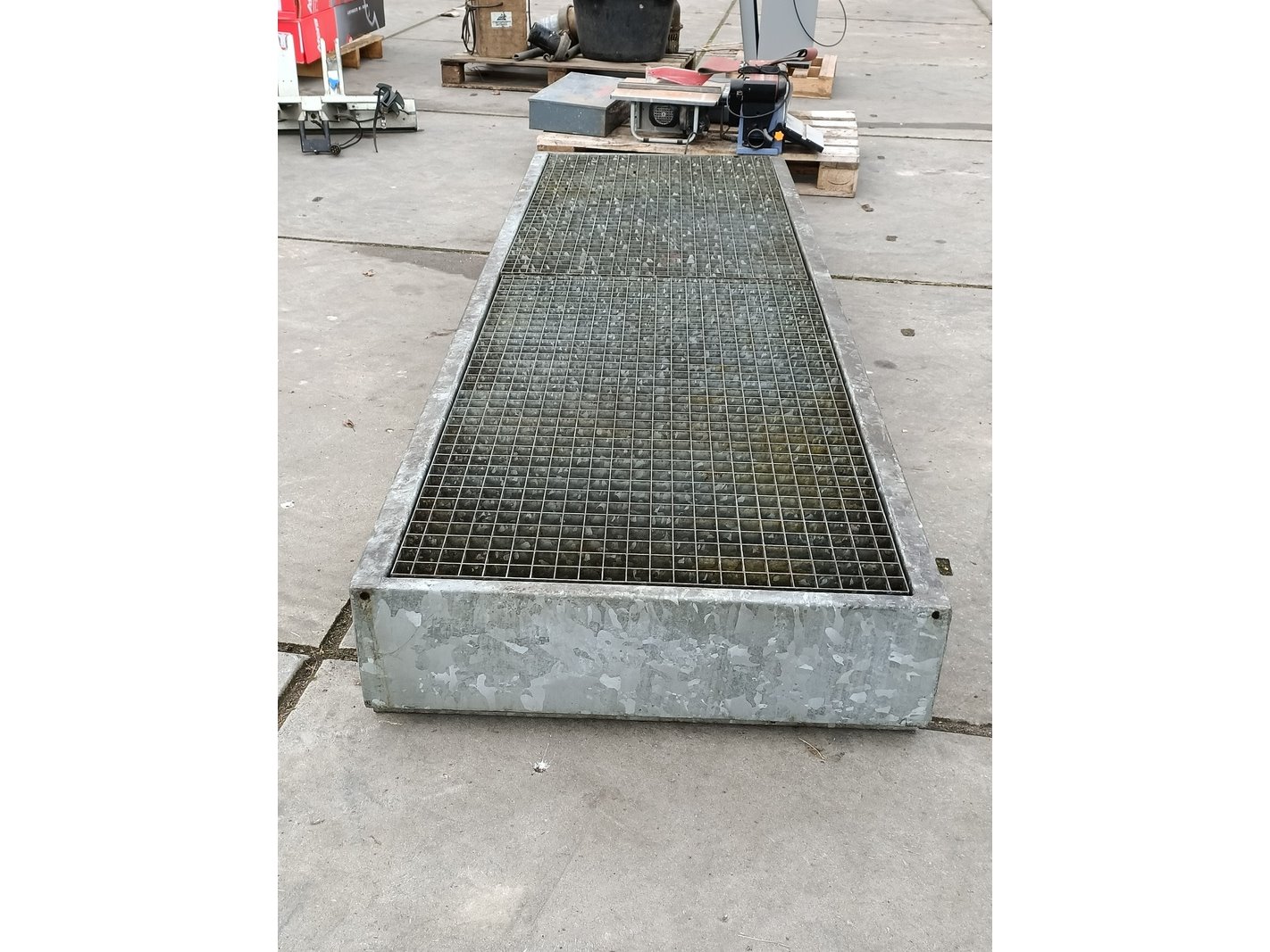 Product: Gegalvaniseerde lekbak Afmeting: lxb ca. 247x80 cm Conditie: Gebruikt
