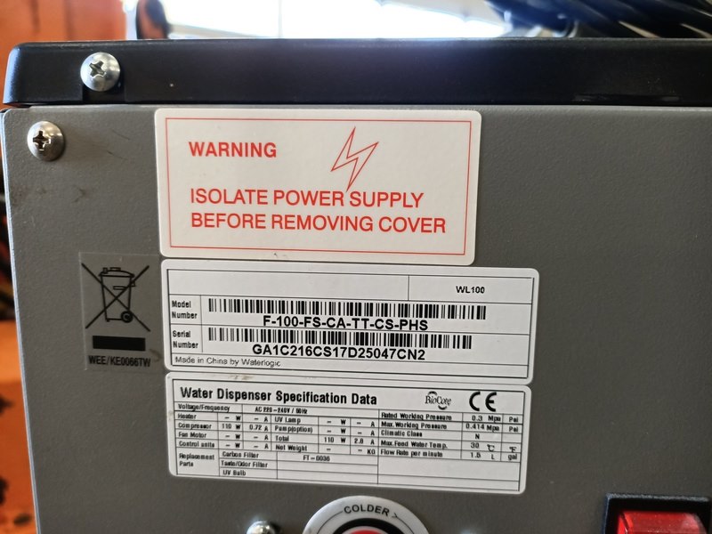 Merk: Waterlogic Product: Waterdispenser Conditie: Gebruikt Specificaties: 230V