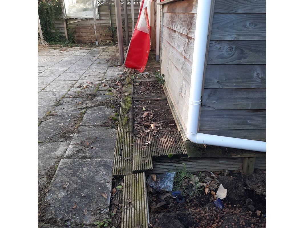 Product: Chalet Afmeting: LxB ca. 10,5x4,8 m Conditie: gebruikt Specificaties: Indeling Woonkamer Keuken (aansluitend aan woonkamer) Badkamer met douche toilet en wastafel 1 slaapkamer met ingebouwde kast 2x Mitsubishi SRK25ZS-W (Split unit) Spotjes in plafond Hoogte plafonds ca. 240 cm. Let op, schuurtje, terras en overkapping aan rechterzijde chalet behoren ook tot het aanbod! Gebreken Groene aanslag op buitenkant chalet Diverse muren met beschadigingen aan binnenzijde Binnenkant chalet vies Een seizoenplaats op Recreatiepark de Nes is geen onderdeel van deze kavel. Deze kavel omvat: - Het chalet (bestaande uit twee delen). - Alle overige aanwezige opstallen, incl. schuur en overige aanbouwdelen. - Alle betegeling/bestrating/(buiten)verlichting, hekwerk etc. - De staplaats moet leeg/kaal opgeleverd worden. Deze kavel omvat niet: - De aanwezige beplanting voor zover deze in de volle grond staat mag blijven staan Na de (sleutel) overdracht heeft de nieuwe eigenaar toegang tot het chalet om voorbereidingen voor de afvoer te treffen en om een inschatting van de uit te voeren werkzaamheden te maken. Overnachten is daarbij niet toegestaan, inzet van zwaar materieel is alleen toegestaan op de opgeven afgiftedagen.