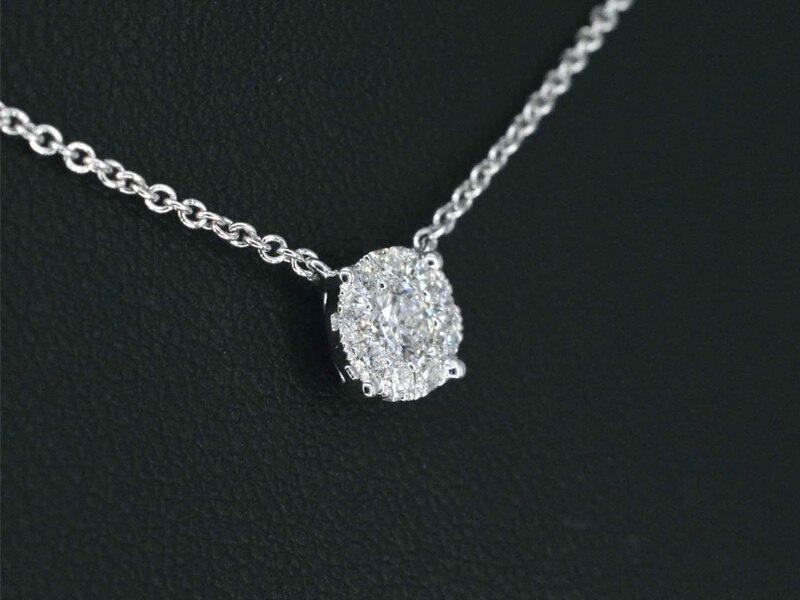 Product: Witgouden ketting en hanger bezet met briljant geslepen diamant Specificaties: Diamant: Natuurlijk Slijpvorm: Briljant geslepen Gewicht (carat): 0.40 carat Kleur: F-G Zuiverheid: VS Slijpkwaliteit: Zeer mooi Juweel: Hanger (incl. Ketting) Gewicht: 3.3 gram Materiaal: 18K goud (750) Conditie: Nieuw Verpakking: Luxe sieradendoos Toelichting: De kwaliteit is overgenomen van het rapport behorend bij item. De waardebepaling is een beoordeling van een gecertificeerde diamantair, gebaseerd op consumentenprijzen. Consumentenprijs: € 5.005,-