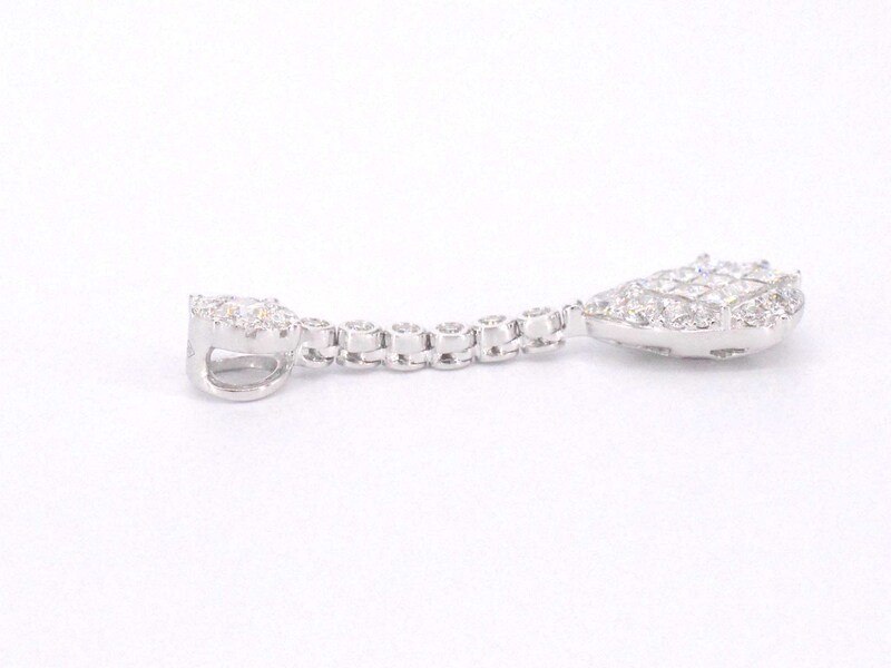 Product: Druppelvormige hanger met briljant en princess geslepen diamanten Specificaties: Diamant: Natuurlijk Slijpvorm: Briljant en prinses geslepen Gewicht (carat): 1.00 carat Kleur: F-G Zuiverheid: VS Slijpkwaliteit: Zeer mooi Juweel: Hanger (excl. ketting) Gewicht: 2.3 gram Afmetingen/lengte: 3 cm Materiaal: 18K goud (750) Conditie: Nieuw Verpakking: Luxe sieradendoos Toelichting: De kwaliteit is overgenomen van het rapport behorend bij item. De waardebepaling is een beoordeling van een gecertificeerde diamantair, gebaseerd op consumentenprijzen. Consumentenprijs: € 6.930,-