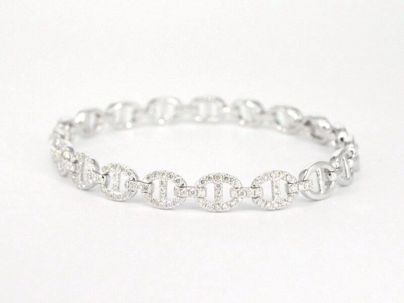 Product: Tennisarmband met diamanten schakels met 157 diamanten Specificaties: Diamant: natuurlijk Slijpvorm: Briljant geslepen Gewicht (carat): 1.50 carat Kleur: F-G Zuiverheid: VS Slijpkwaliteit: Zeer mooi Juweel: Armband Gewicht: 16.2 gram Afmetingen/lengte: 17-18 cm Materiaal: 18K goud (750) Conditie: Nieuw Verpakking: Luxe sieradendoos Toelichting: De kwaliteit is overgenomen van het rapport behorend bij item. De waardebepaling is een beoordeling van een gecertificeerde diamantair, gebaseerd op consumentenprijzen. Consumentenprijs: € 15.453,-